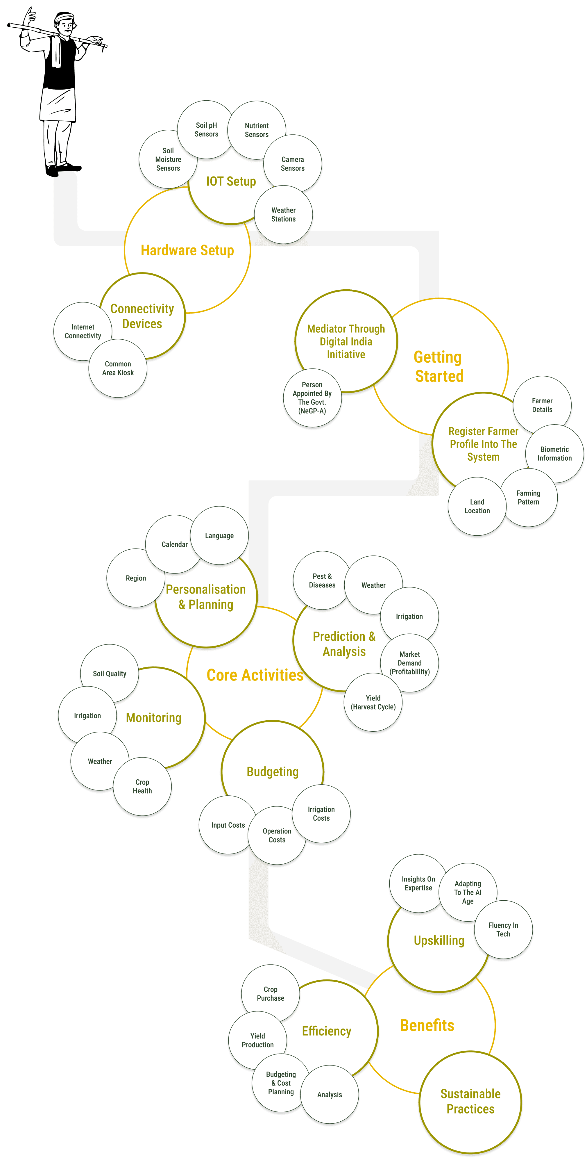 Mapping out different aspects of farming where automation solutions become an enabler without replacing the human themselves. These aspects laid out the base for the questions asked when taking interviews and group discussions with farmers and zone in on the scope of the project