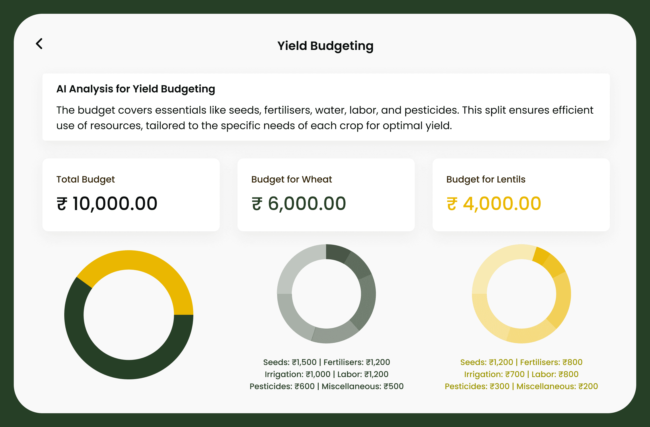 Enter your budget to get an AI-generated cost breakdown for seeds, fertilisers, irrigation, labor, and more, ensuring efficient resource allocation for maximum yield.